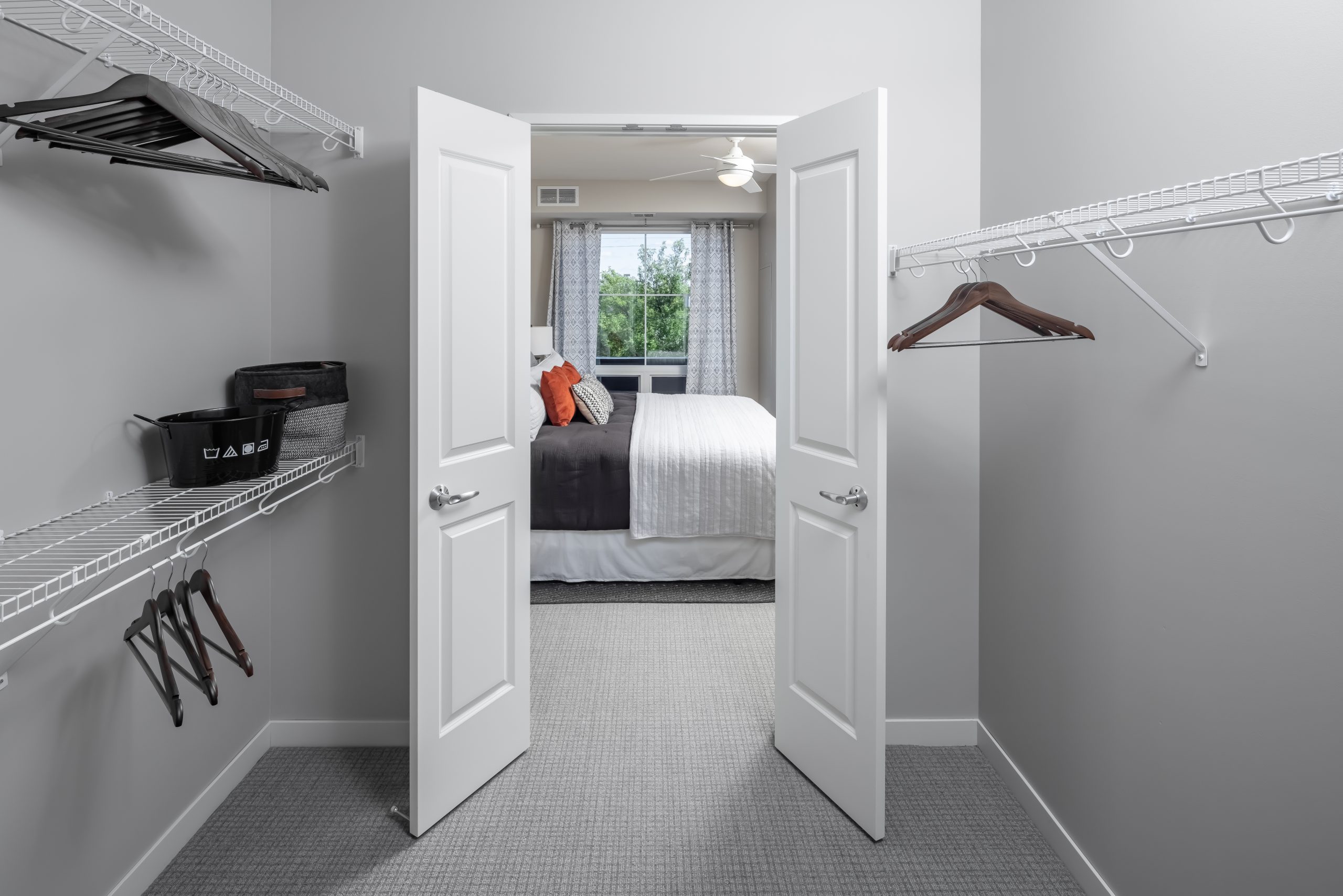 Each Olinia residence embraces thoughtful design and elevated finishes, with granite countertops, soft-close cabinetry, and kitchen islands or peninsulas that anchor luminous, open interiors. Private balconies or terraces extend the living experience, offering a quiet connection to Minnesota’s changing seasons, while large walk-in closets and ideal bathroom layouts ensure a spacious feel. Select homes include fireplaces and double-sink vanities to heighten everyday comfort, while full-sized washers and dryers and cabinetry finishes in white, sand, or slate make each home a reflection of effortless, personal refinement. Images shown are from other homes within The Doran Group's portfolio and are similar to the design and finishes planned for Olinia's residences.